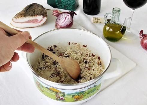 Published 10 June 2015 at 490 × 350 in Risotto al Sagrantino di Montefalco con pecorino di Norcia e guanciale croccante 3.