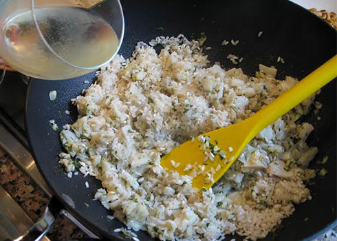 Published 26 May 2015 at 490 × 350 in Risotto cremoso allo stokke, olive taggiasche e alici sfumare il riso.